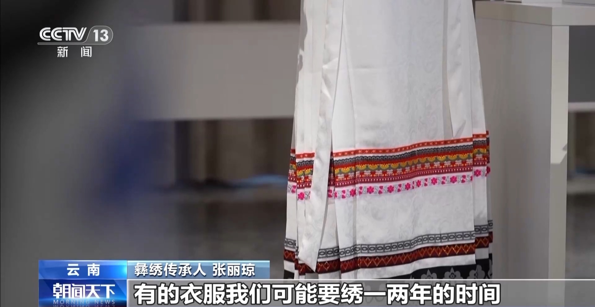 彝繡傳承人 張麗瓊:有的衣服我們可能要繡一兩年的時間。我們的彝族服飾,一定是有收藏價值、欣賞價值、藝術價值,它是融合為一體的。