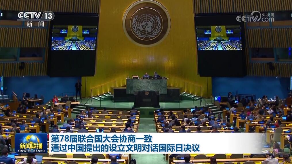 第78屆聯(lián)合國大會7日協(xié)商一致通過中國提出的設(shè)立文明對話國際日決議。