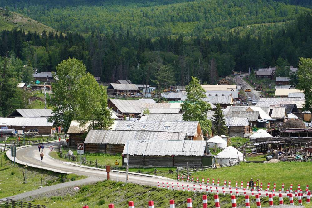 初夏午后,阿爾泰山蒼翠欲滴,牛羊成群。新疆哈巴河縣齊巴爾鎮(zhèn)吉林新村人頭攢動(dòng),來(lái)自五湖四海的游客走進(jìn)電視劇《我的阿勒泰》拍攝地,尋找“詩(shī)與遠(yuǎn)方”。