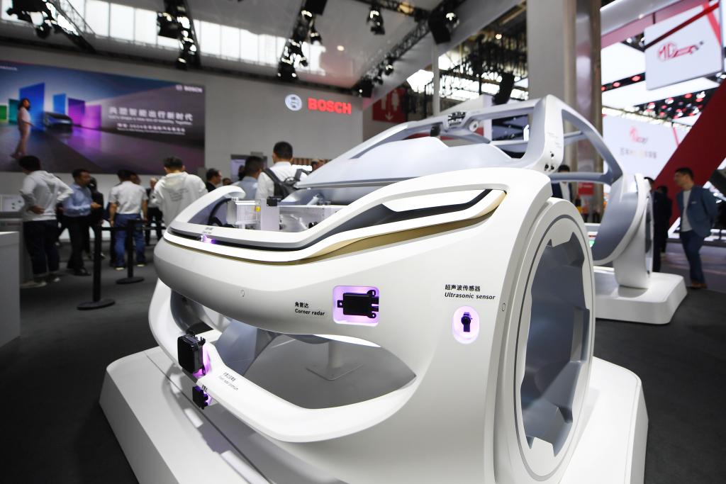 在北京車展上,博世公司展臺展出可用于新能源汽車智能出行解決方案的相關產(chǎn)品(4月25日攝)。新華社記者鞠煥宗攝