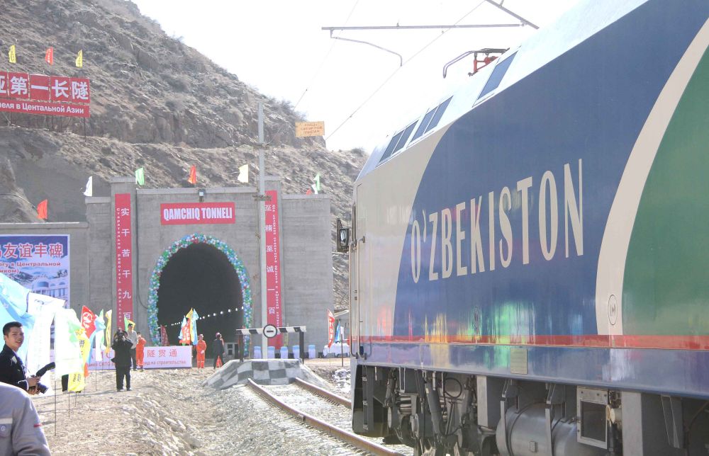 2016年2月27日,一列專列停在烏茲別克斯坦安格連至琶布鐵路甘姆奇克隧道進(jìn)口。這一隧道長19.26公里,為中亞第一長隧、烏茲別克斯坦一號工程,也是“絲綢之路”經(jīng)濟(jì)帶鐵路網(wǎng)中吉烏鐵路的重要一環(huán)。新華社記者沙達(dá)提攝