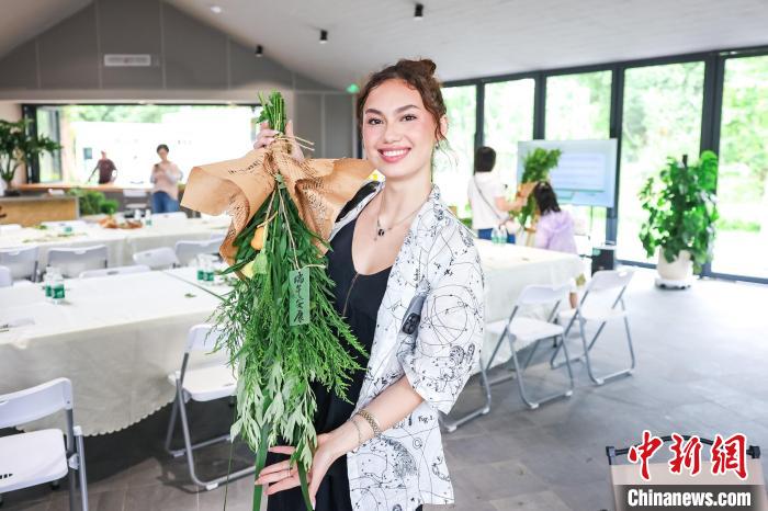 6月10日,漢娜·羅斯展示自己現場制作的菖蒲花束。(主辦方供圖)