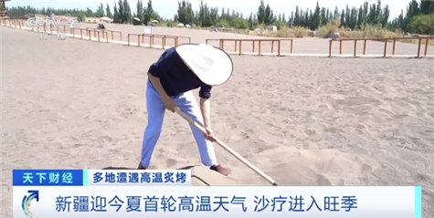 從6月10日開始,新疆大部分地區(qū)迎來了入夏以來首輪高溫天氣,部分地區(qū)的氣溫升至40攝氏度以上。在吐魯番,沙療產業(yè)迎來了旺季。