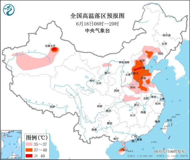 中央氣象臺6月17日06時繼續(xù)發(fā)布高溫黃色預警:預計17日白天,內(nèi)蒙古西北部、新疆南疆盆地和東部、河北中南部和東北部、北京、天津、遼寧西部、山東中西部、河南東部和南部、安徽北部、湖北東北部、海南島大部等地有35~36℃高溫天氣,其中,新疆南疆盆地、河北中南部、北京南部、遼寧西南部、山東北部等地部分地區(qū)最高氣溫37~39℃,新疆吐魯番盆地等地局地可達40℃以上。