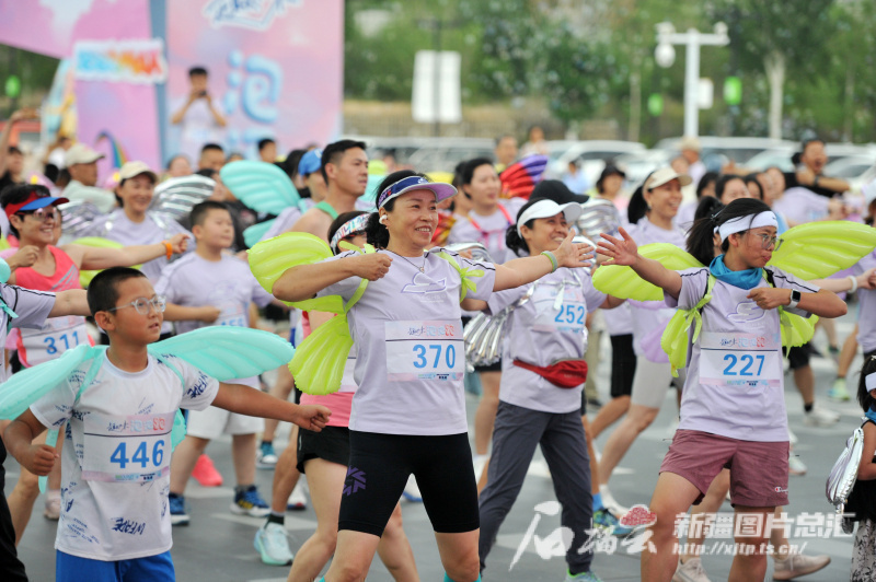 △6月14日,一場(chǎng)趣味“泡泡跑”活動(dòng)在烏魯木齊杉杉奧特萊斯廣場(chǎng)舉辦,600多名市民參加了這場(chǎng)別開(kāi)生面的5公里“泡泡跑”。與傳統(tǒng)的跑步比賽不同,“泡泡跑”更具趣味性,參與者可以邊跑邊玩,盡情享受一場(chǎng)清涼的泡泡盛宴。石榴云/新疆日?qǐng)?bào)記者 秦梅花攝