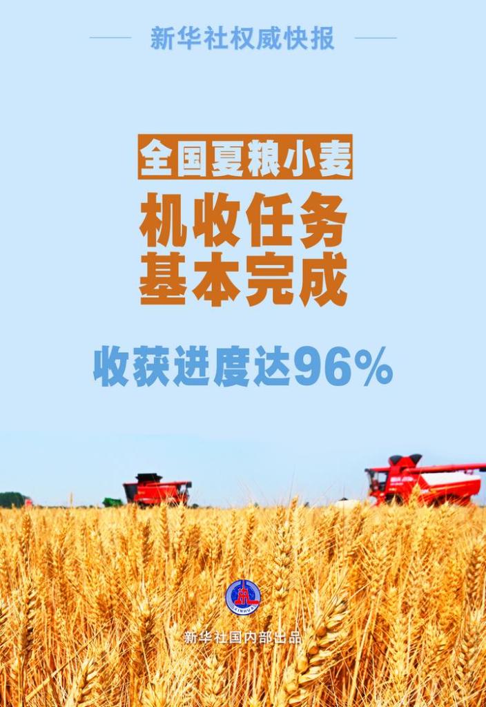 目前,全國(guó)夏糧小麥?zhǔn)斋@進(jìn)度已達(dá)96%,“三夏”小麥機(jī)收任務(wù)基本完成。
