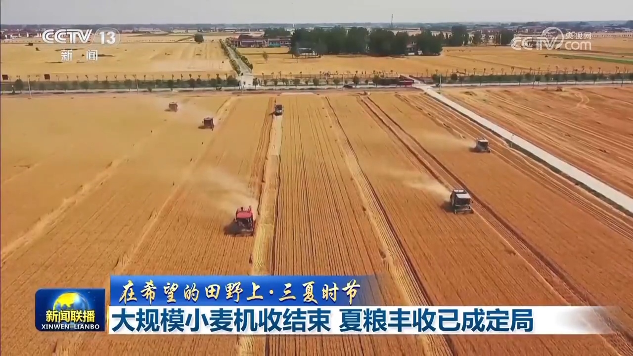 記者從農(nóng)業(yè)農(nóng)村部了解到,全國大規(guī)模小麥機(jī)收自5月27日全面展開,截至今天(6月18日),西南、黃淮海等麥?zhǔn)罩攸c(diǎn)地區(qū)收獲基本完成。這也意味著“三夏”大規(guī)模小麥機(jī)收結(jié)束,夏糧豐收已成定局。