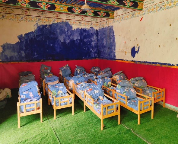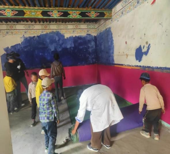 金點(diǎn)子,抓實(shí)干。自階段性入戶工作開(kāi)展以來(lái),駐西嘎村第十三批工作隊(duì)認(rèn)真了解入戶時(shí)發(fā)現(xiàn)的村幼兒園改造未能推進(jìn)的問(wèn)題,現(xiàn)場(chǎng)走訪村幼兒園,排查村幼兒園用火、用電、用氣、食品衛(wèi)生安全隱患。在交談中,兩位教師談及幼兒園房間老舊、水泥地板凹凸不平,導(dǎo)致幼兒無(wú)法午休的問(wèn)題,工作隊(duì)第一時(shí)間請(qǐng)示領(lǐng)導(dǎo),現(xiàn)場(chǎng)勘察房間形狀與大小,駐村隊(duì)員自發(fā)購(gòu)買并鋪就64.2平米防滑草坪地毯,以改善園內(nèi)22名幼兒生活環(huán)境,給孩子們創(chuàng)建了相對(duì)舒適、干凈的午休環(huán)境。村幼兒園教師次珍表示:“此次活動(dòng)極大改善了孩子們的生活條件,感謝人行日喀則市分行駐村工作隊(duì)一直以來(lái)對(duì)村幼兒園工作的關(guān)心。”