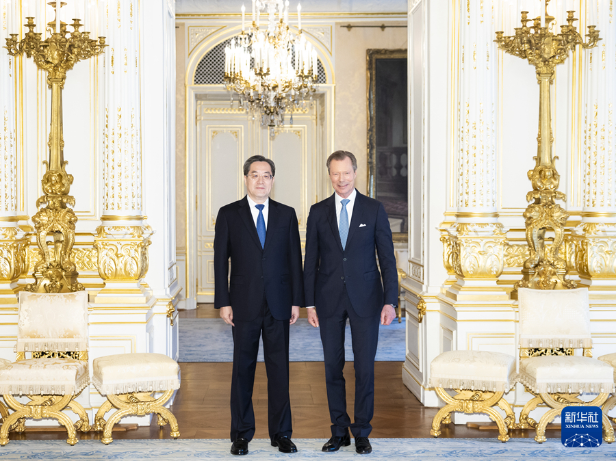 6月20日至21日,中共中央政治局常委、國務院副總理丁薛祥訪問盧森堡,分別會見盧森堡大公亨利、國民議會議長維斯勒、首相弗里登、副首相貝泰爾,出席第二屆鄭州-盧森堡“空中絲綢之路”國際合作論壇并致辭。這是6月20日,丁薛祥會見盧森堡大公亨利。新華社記者 黃敬文 攝