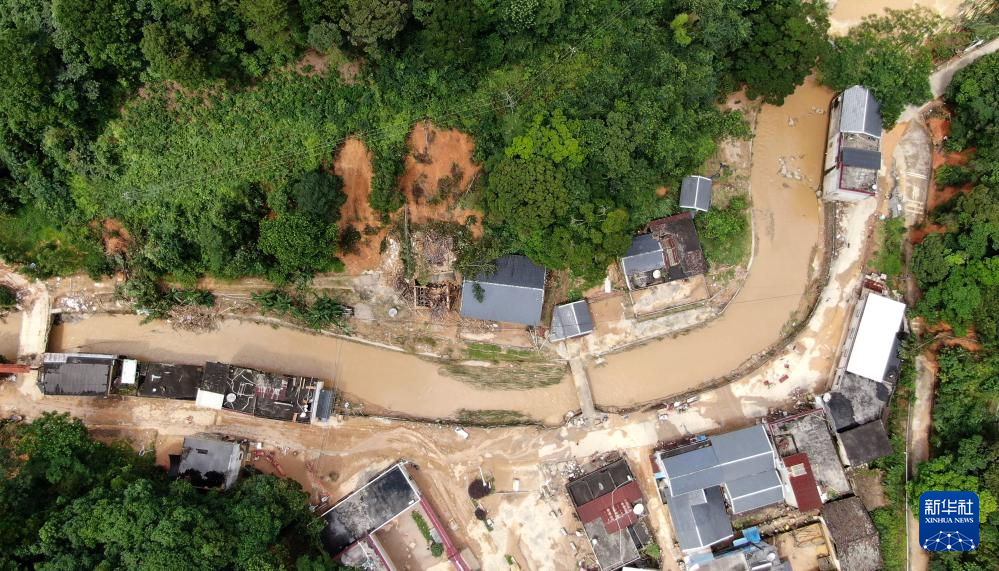 災(zāi)后的廣東省梅州市平遠(yuǎn)縣泗水鎮(zhèn)大新村(6月19日攝,無(wú)人機(jī)照片)。新華社記者 盧漢欣 攝