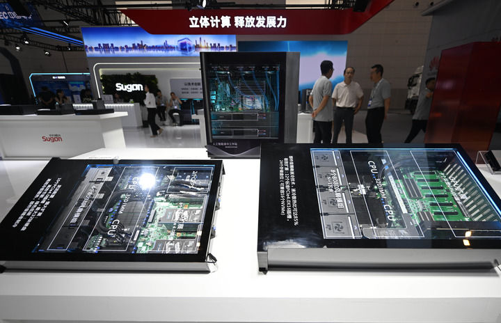 這是6月20日在博覽會上拍攝的中科曙光展區(qū)的一臺人工智能服務器。新華社記者 趙子碩 攝
