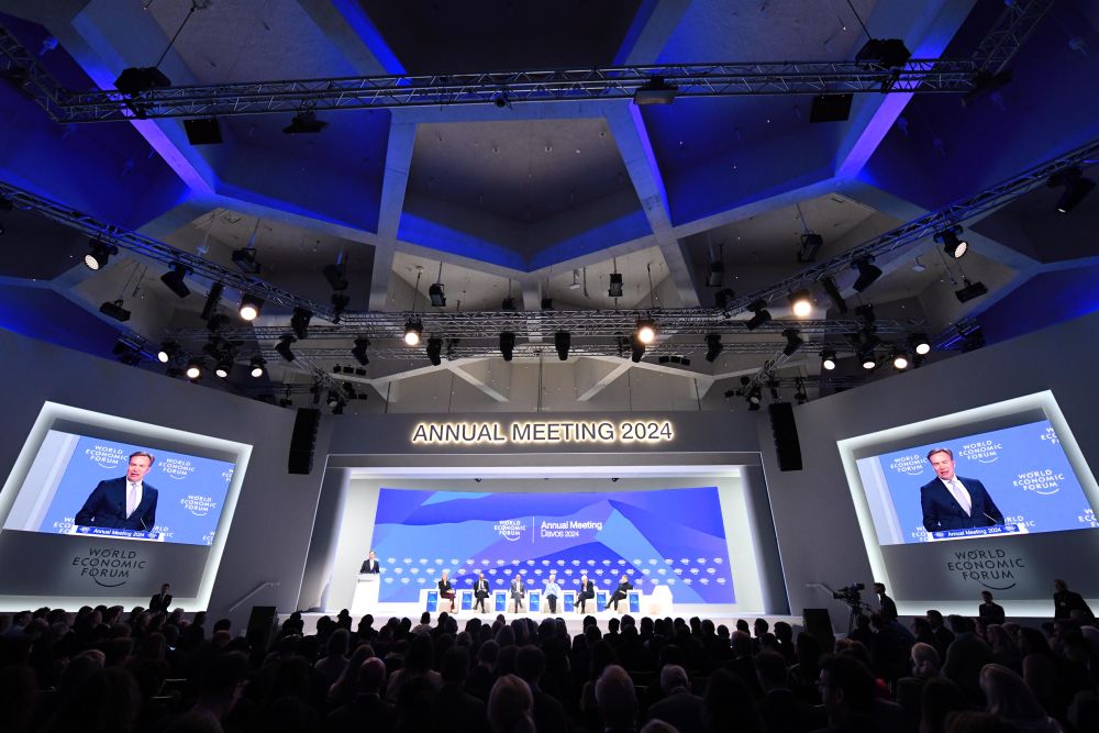 ↑在瑞士達(dá)沃斯舉行的世界經(jīng)濟(jì)論壇2024年年會現(xiàn)場。
