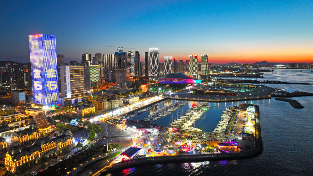 ↑夏季達(dá)沃斯主會場所在的大連東港商務(wù)區(qū)。
