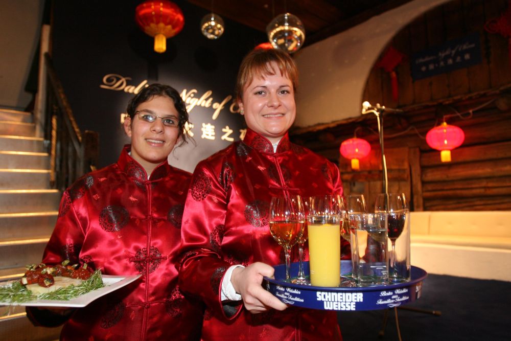 2007年1月25日,在瑞士達(dá)沃斯舉行的“中國大連之夜”上,當(dāng)?shù)嘏?wù)員穿上了中國傳統(tǒng)服裝。