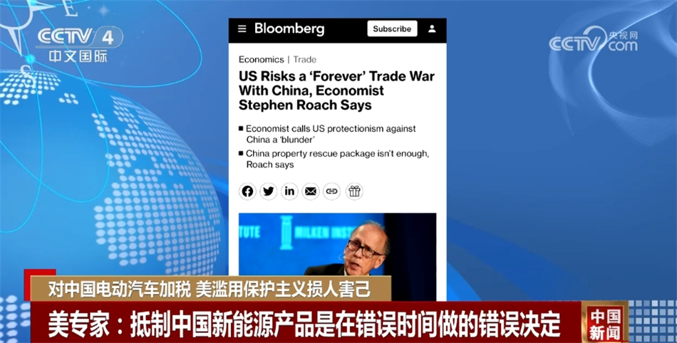 美國(guó)耶魯大學(xué)高級(jí)研究員斯蒂芬·羅奇稱:“我認(rèn)為這是美國(guó)選舉年由政治驅(qū)動(dòng)的巨大戰(zhàn)略錯(cuò)誤,對(duì)中國(guó)這樣一個(gè)在生產(chǎn)零碳新能源產(chǎn)品方面具有比較優(yōu)勢(shì)的國(guó)家,采取貿(mào)易保護(hù)主義立場(chǎng),在我看來(lái),這可能是一個(gè)歷史性的錯(cuò)誤。零碳替代能源產(chǎn)品是受到氣候變化影響的世界所迫切需要的,這恰恰是在錯(cuò)誤的時(shí)間做了錯(cuò)誤的事?!?/p>