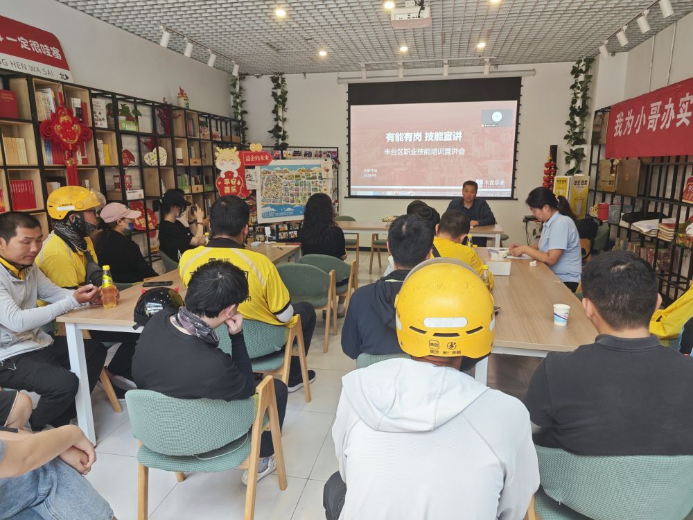 面向外賣員的職業(yè)技能培訓(xùn)會(huì)在北京中關(guān)村豐臺(tái)園內(nèi)的務(wù)工人員之家開(kāi)講。新華社記者陳旭 攝