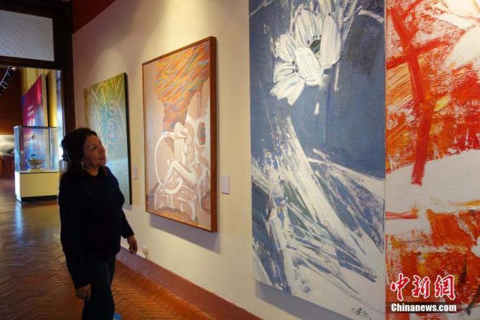 資料圖:當(dāng)?shù)貢r(shí)間2016年11月18日,利馬,一名秘魯女觀眾觀看APEC“人與自然”藝術(shù)展。11月16日,為期23天的“感知中國(guó)走進(jìn)秘魯——APEC‘人與自然’藝術(shù)展”在秘魯國(guó)家考古人類學(xué)歷史博物館舉辦。 中新社記者 莫成雄 攝