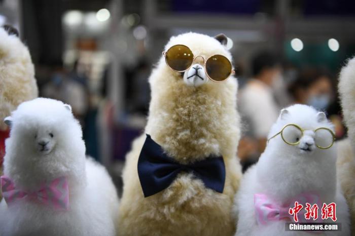 資料圖:2021年5月7日,首屆中國(guó)國(guó)際消費(fèi)品博覽會(huì)在海南省??谑姓介_展,秘魯羊駝毛產(chǎn)品品牌Warmpaca攜各種羊駝萌寵玩偶亮相消博會(huì)。 中新社記者 崔楠 攝