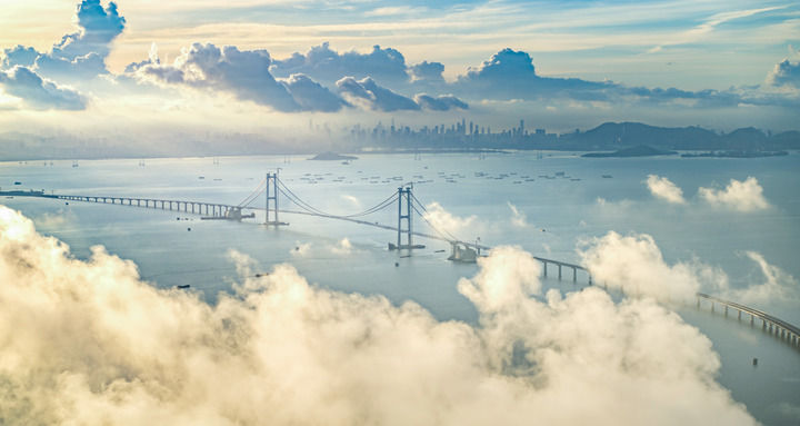 “零丁洋里嘆零丁”。700多年前,南宋愛(ài)國(guó)詩(shī)人文天祥曾在這里望洋興嘆。如今,來(lái)自大江南北的一萬(wàn)多名建設(shè)者“七年磨一劍”,在伶仃洋上架天路、筑長(zhǎng)城、造雙島,一個(gè)接一個(gè)基建“奇跡”,讓“嘆零丁”變“跨巨變”。