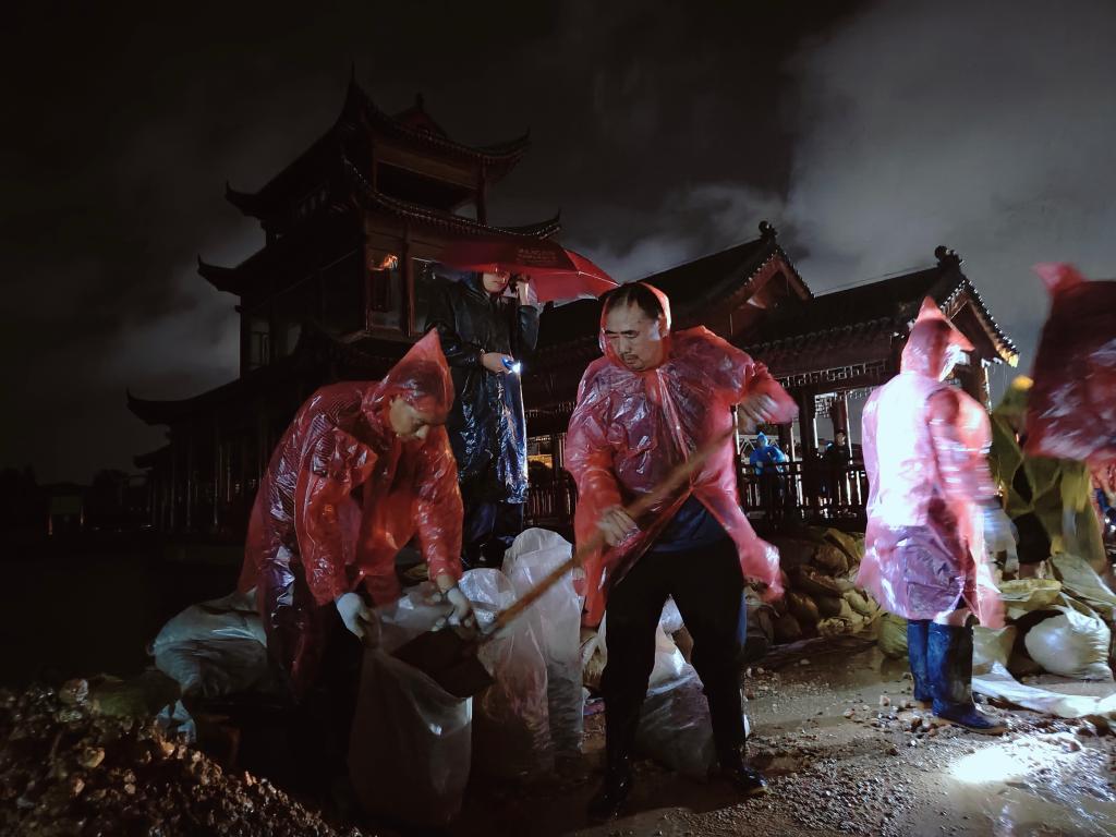 這是7月1日22時(shí)在汨羅市湖溪垸楊泗廟堤段拍攝的搶筑子堤場景。(汨羅市融媒體中心供圖)