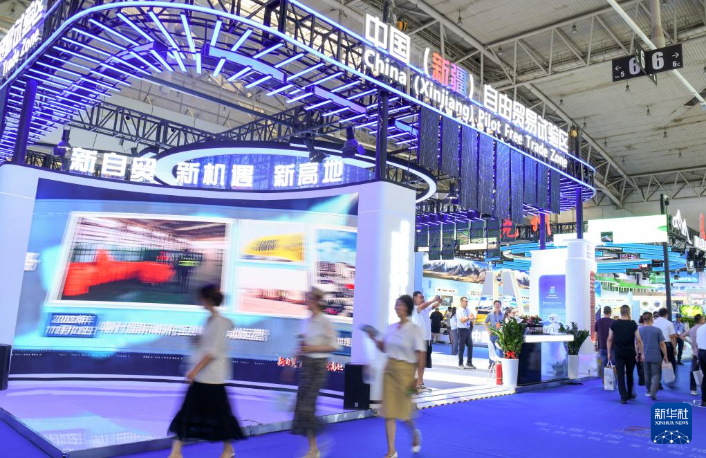 2024年6月27日,在第八屆中國—亞歐博覽會上,觀眾在中國(新疆)自由貿(mào)易試驗區(qū)展臺參觀。新華社記者 王菲 攝