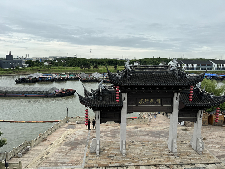 行走在運(yùn)河公園,亭、臺(tái)、樓、閣錯(cuò)落有致,碑、牌、匾、聯(lián)引人思緒。登望運(yùn)閣極目遠(yuǎn)眺,河面上舟楫如織。作為大運(yùn)河最繁忙的河段之一,每天,有數(shù)千條貨船從這里穿行,他們?cè)凇皡情T長洲”的石坊前劃過的一瞬間,仿佛古今同框,一眼千年。