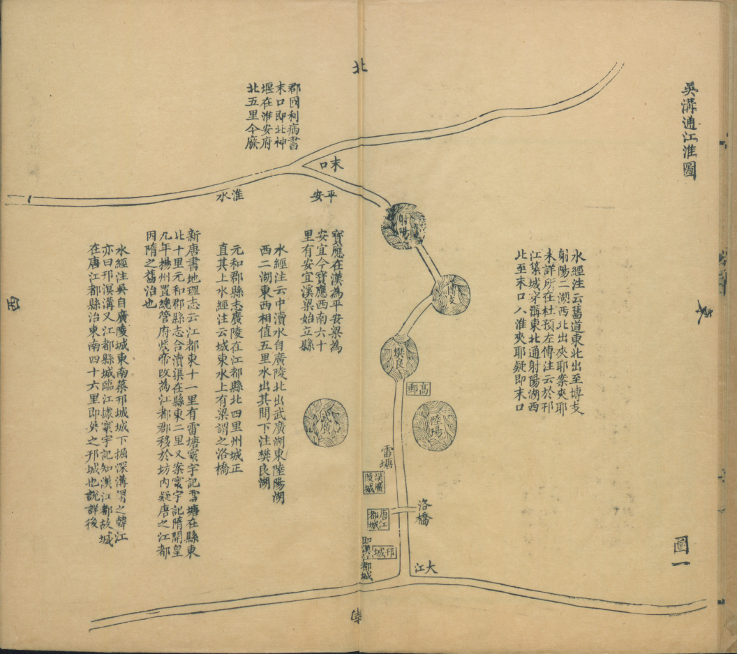 《邗溝故道歷代變遷圖說》(清)徐庭曾撰清光緒三十年(1904)刻本一書,曾以地圖的形式展示了邗溝故道以及歷史上的七次變遷。八幅運(yùn)河圖,圖版詳實(shí),文字簡明,還標(biāo)注出了水道的變化。