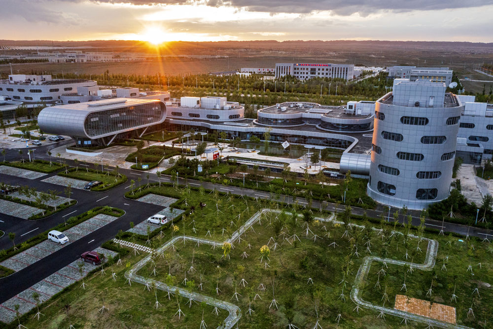 從空中俯瞰克拉瑪依云計算產業(yè)園區(qū)(2021年8月13日攝)。新華社發(fā)(閔勇 攝)