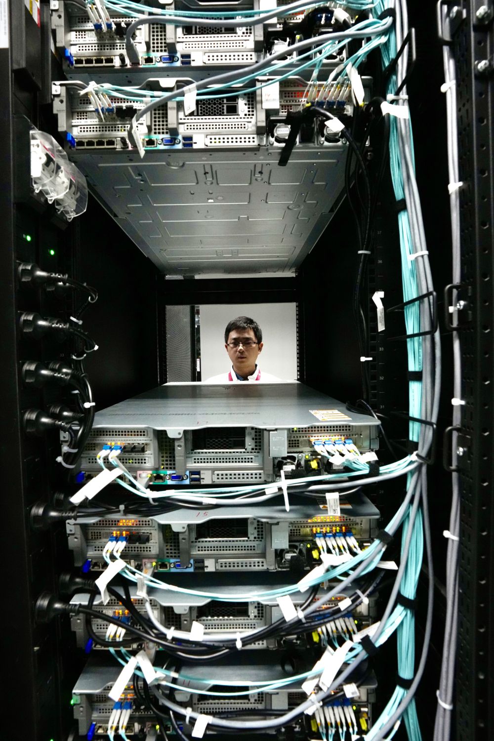 2月27日,克拉瑪依云計算產業(yè)園區(qū)華為云服務數據中心,技術人員正在巡查。新華社發(fā)(崔文娟 攝)