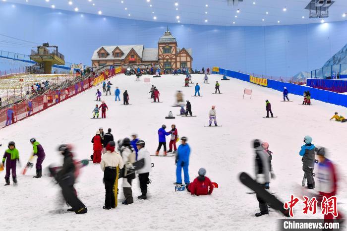 2024年1月14日,廣東省廣州市,民眾在熱雪奇跡室內(nèi)滑雪場練習(xí)滑雪,感受冰雪運(yùn)動的魅力。 記者 陳驥旻 攝