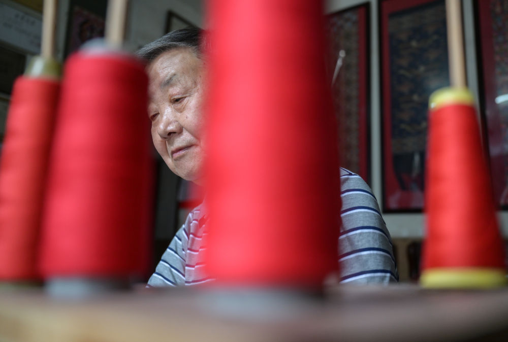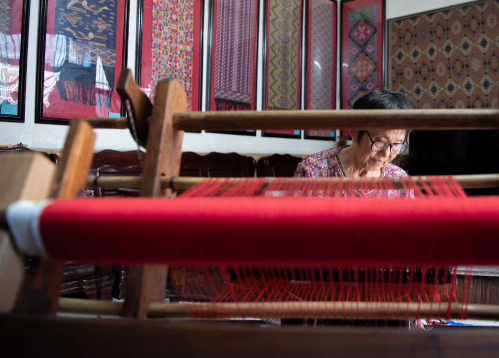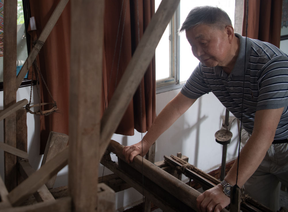 7月3日,唐洪祥檢查織錦博物館里收藏的清代木織機狀況。
