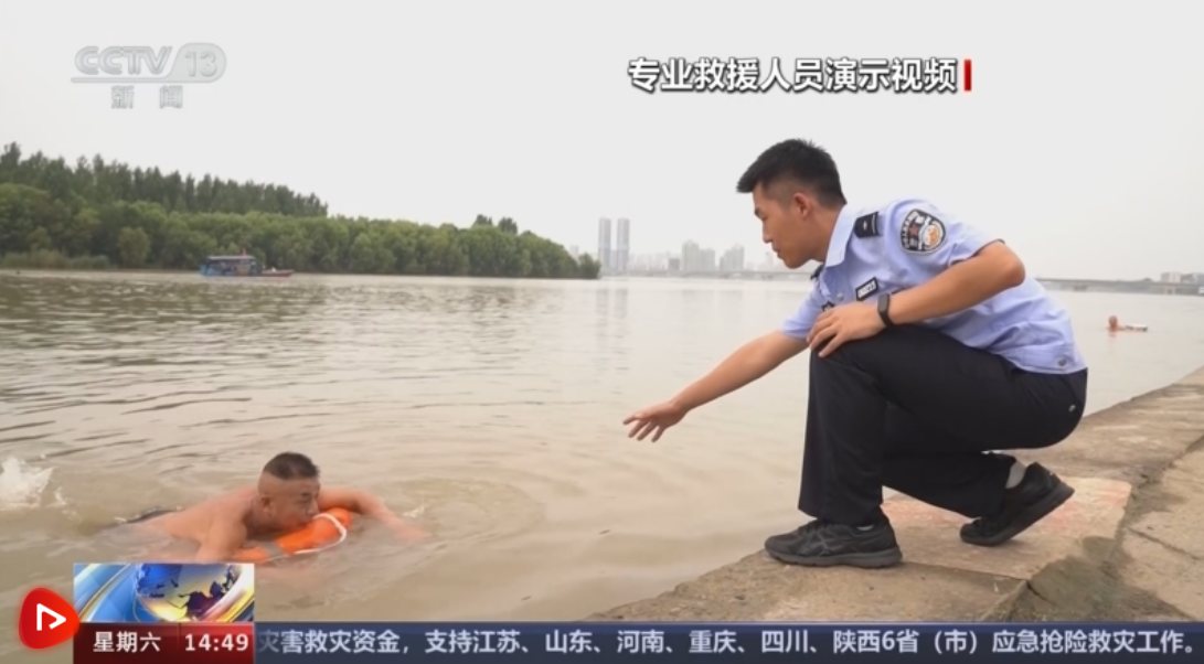 襄陽市襄城區(qū)公安分局民警高培龍介紹,大家如果發(fā)現(xiàn)有人落水,不要盲目施救,首先尋找救生衣、救生圈進(jìn)行施救,千萬不要手拉手地施救,防治一起溺水??梢缘桨哆厡ふ议L竹竿,將溺水者拖上岸。