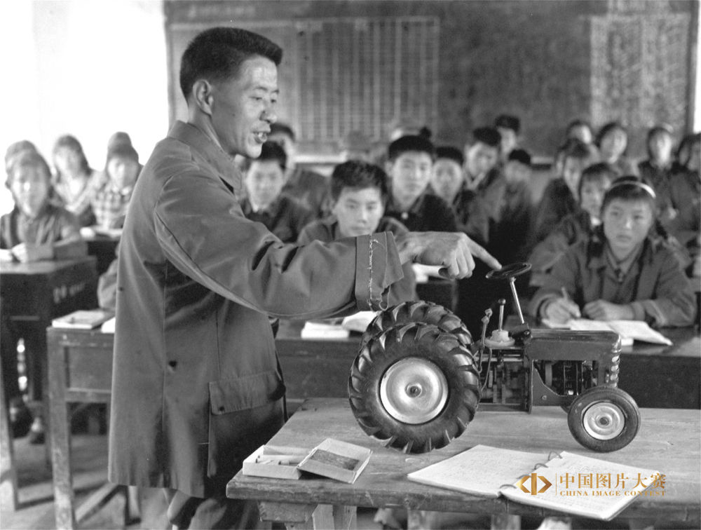 1980年12月4日,湖北省蒲圻縣泉口農(nóng)業(yè)中學(xué)教師給農(nóng)機班學(xué)生講拖拉機結(jié)構(gòu)原理。李一方 攝/新華社中國照片檔案館
