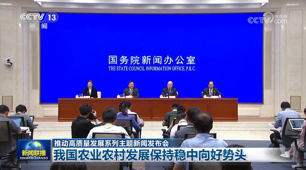 國(guó)務(wù)院新聞辦公室7月24日舉行推動(dòng)高質(zhì)量發(fā)展系列主題新聞發(fā)布會(huì),農(nóng)業(yè)農(nóng)村部負(fù)責(zé)人介紹,黨的十八大以來(lái),我國(guó)農(nóng)業(yè)農(nóng)村發(fā)展持續(xù)保持穩(wěn)中向好、穩(wěn)中提質(zhì)勢(shì)頭。