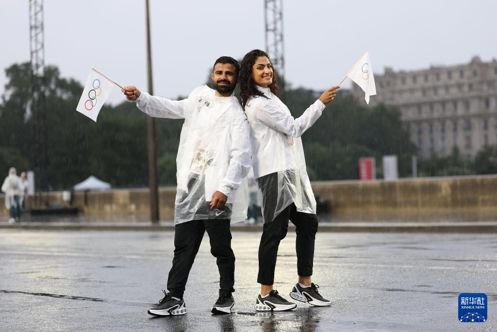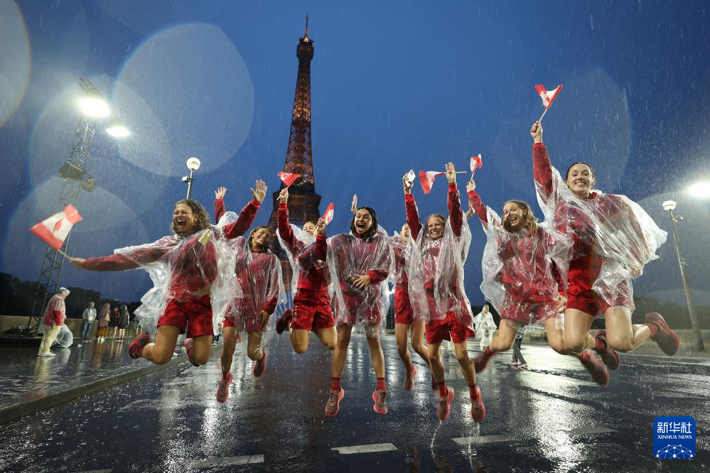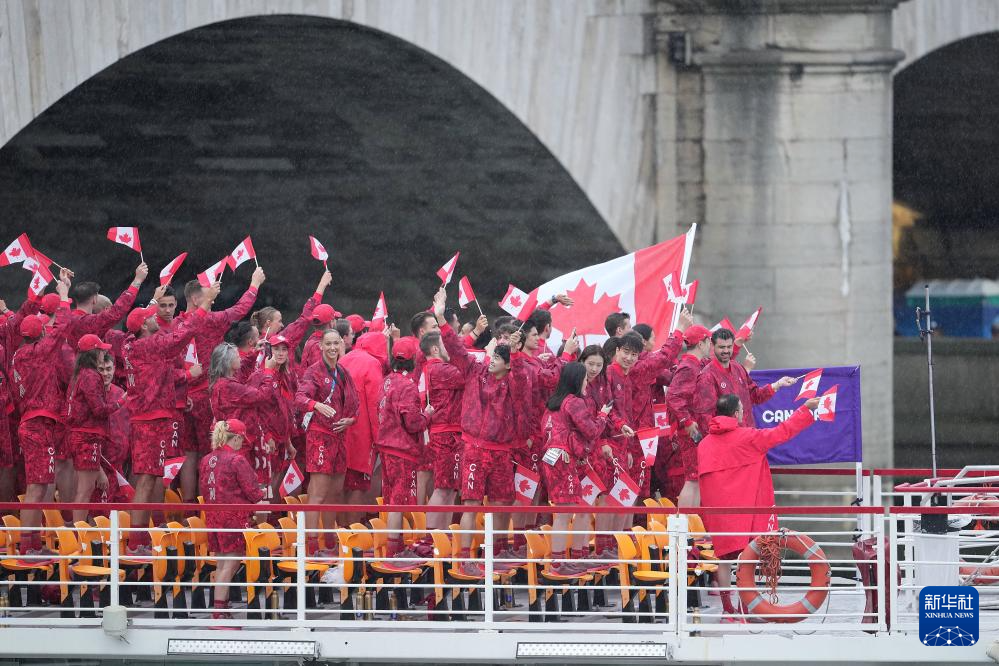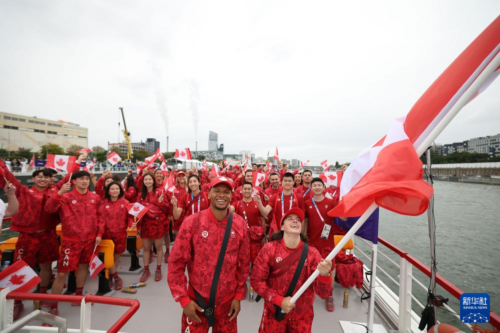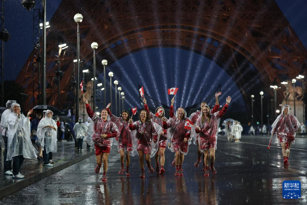 7月26日,加拿大體育代表團(tuán)成員在開(kāi)幕式前。新華社記者 曹燦 攝