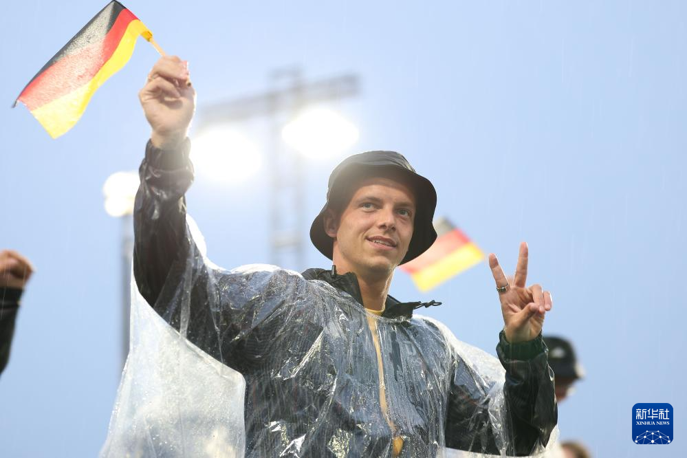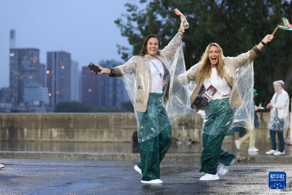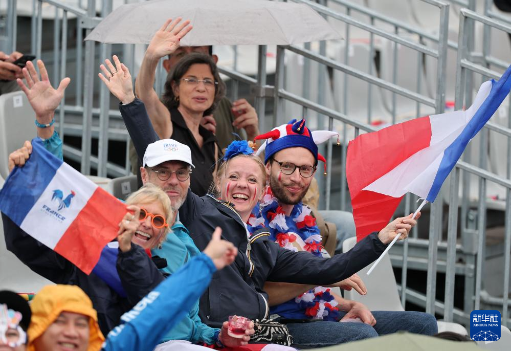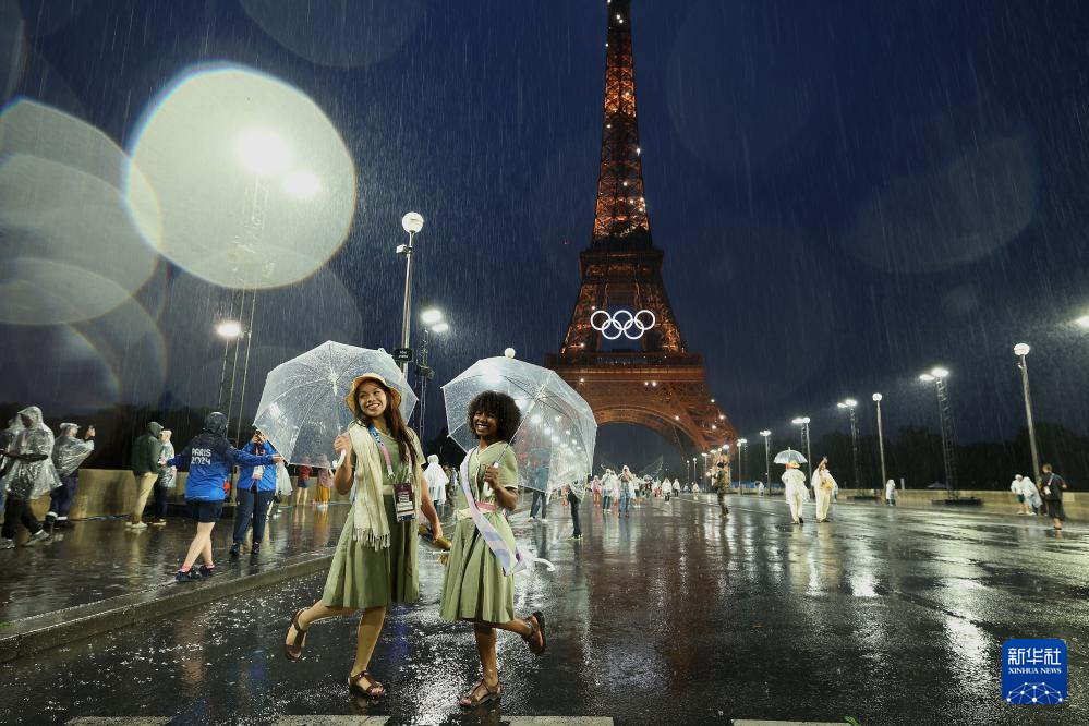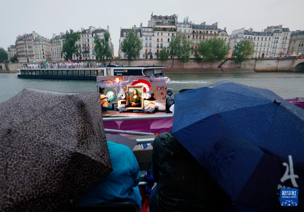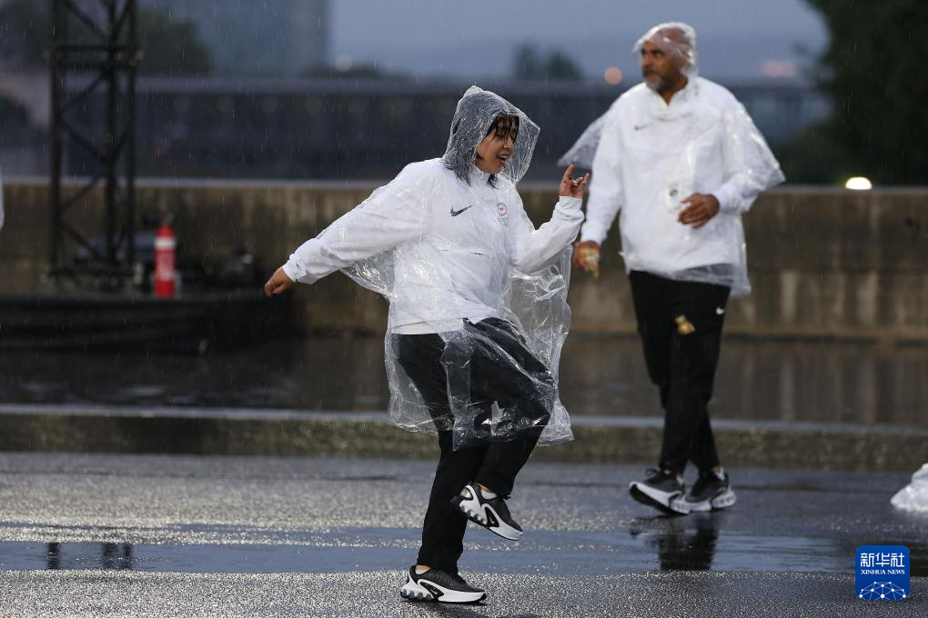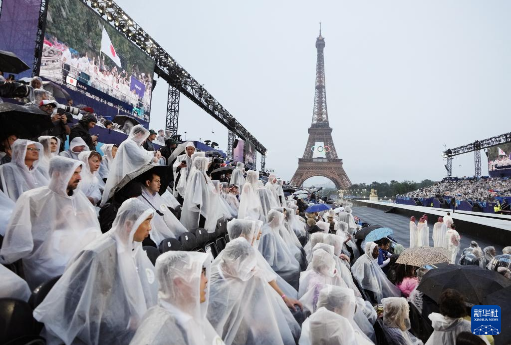7月26日,觀眾在雨中觀看開(kāi)幕式。新華社發(fā)(POOL照片/克洛達(dá)赫·基爾科因)