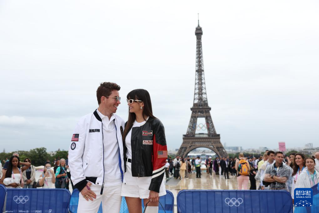 7月26日,加拿大體育代表團(tuán)成員在埃菲爾鐵塔前。新華社記者 李明 攝