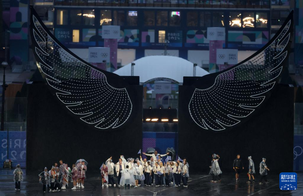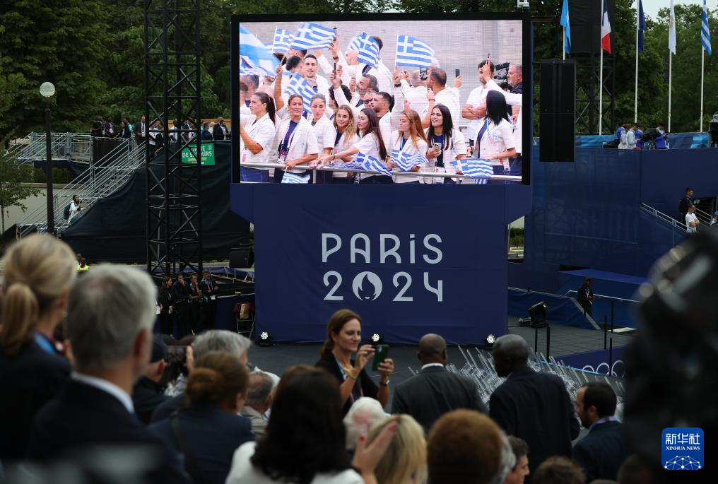 7月26日,希臘體育代表團(tuán)在開(kāi)幕式上。新華社記者 張玉薇 攝