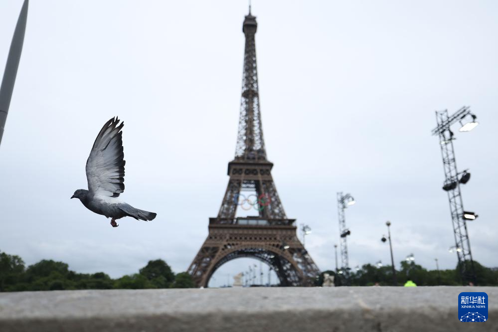 7月26日,一只鴿子在埃菲爾鐵塔前飛過(guò)。新華社記者 李明 攝