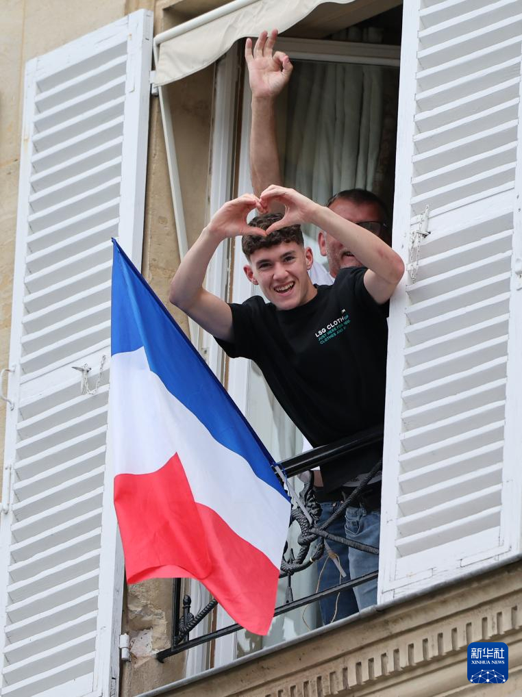 7月26日,法國(guó)體育代表團(tuán)在開(kāi)幕式上。新華社記者 趙丁喆 攝