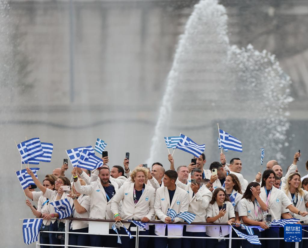 7月26日,希臘體育代表團(tuán)在開(kāi)幕式上。新華社記者 孟永民 攝