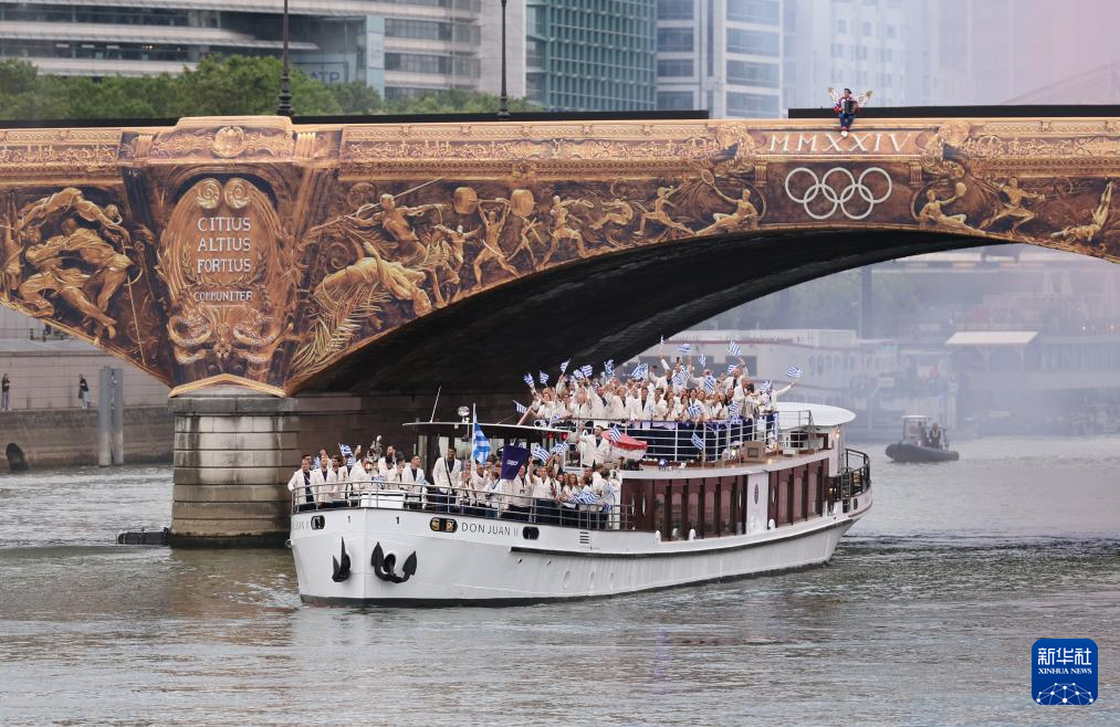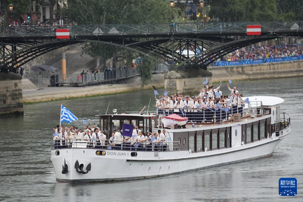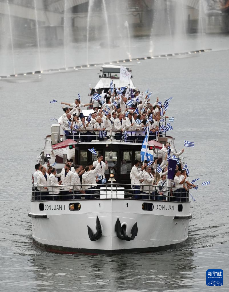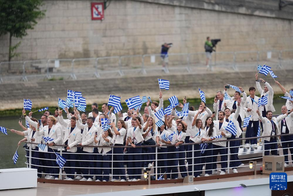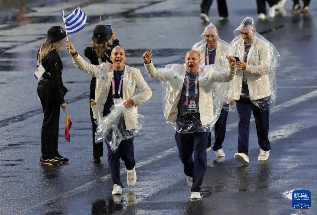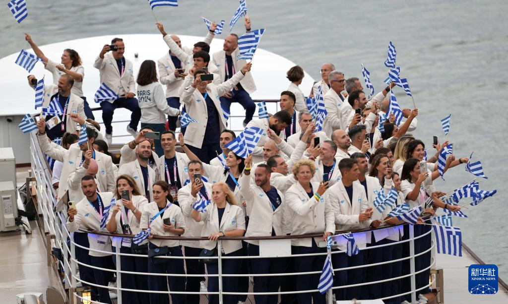 7月26日,希臘體育代表團(tuán)在開(kāi)幕式上。新華社記者 賀燦鈴 攝