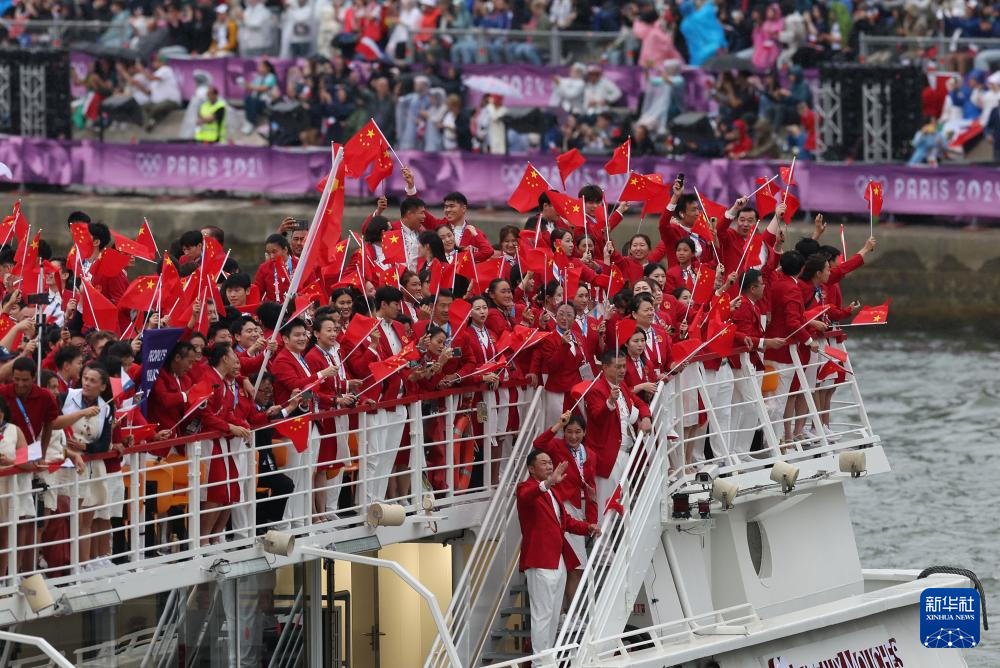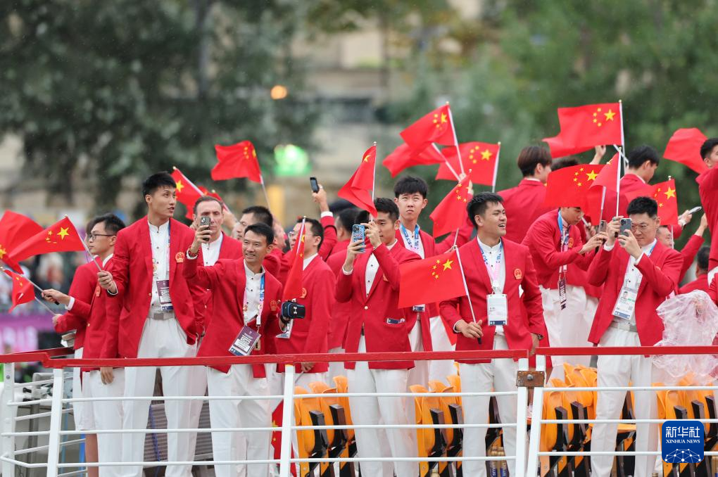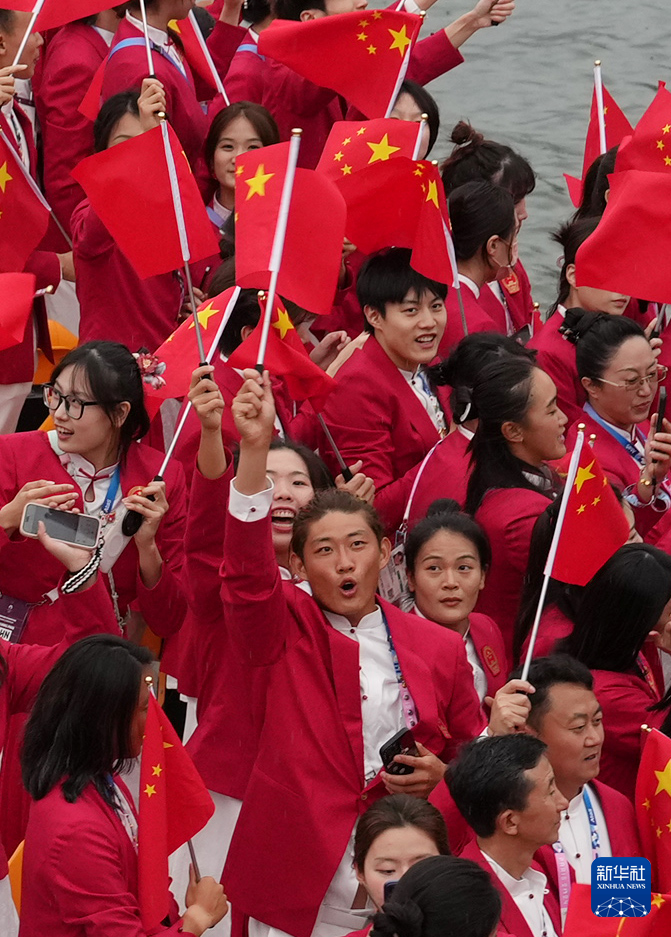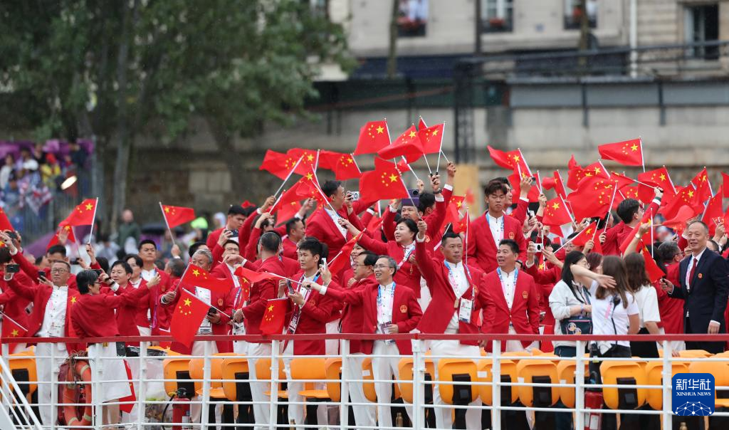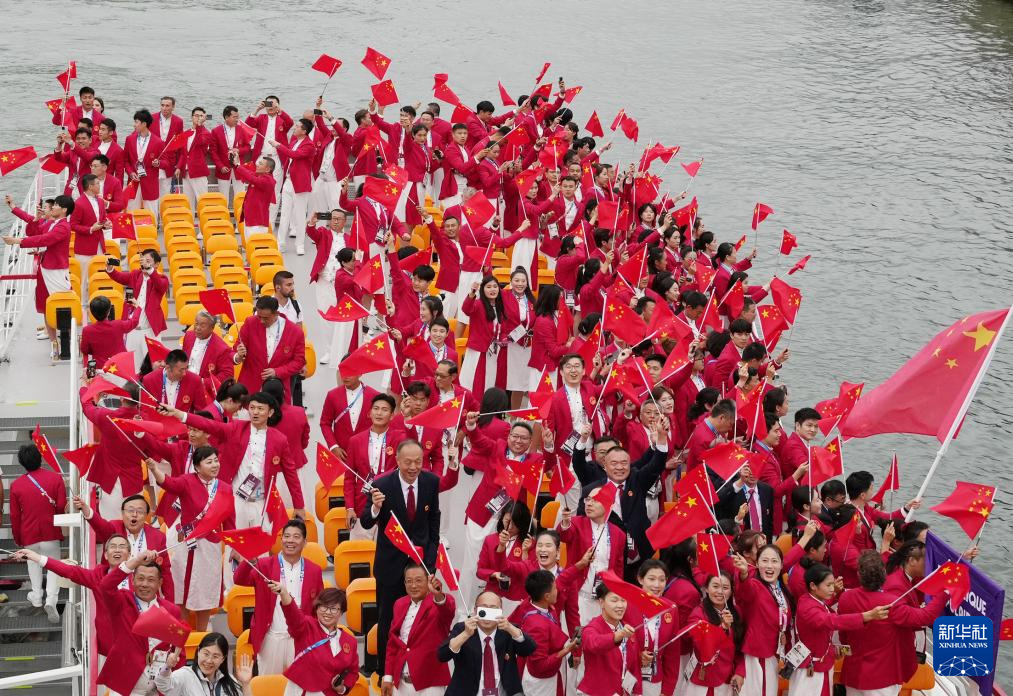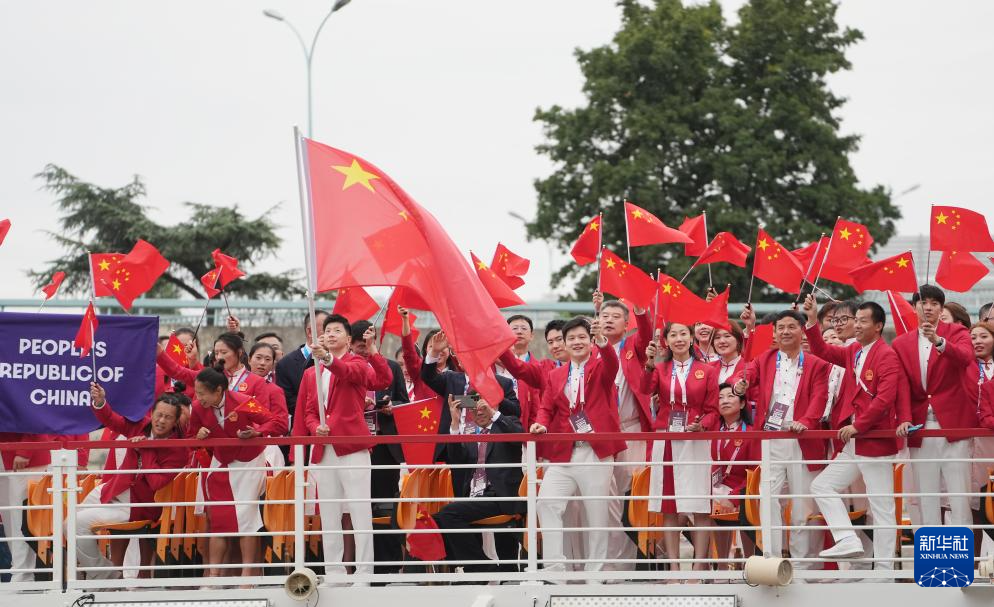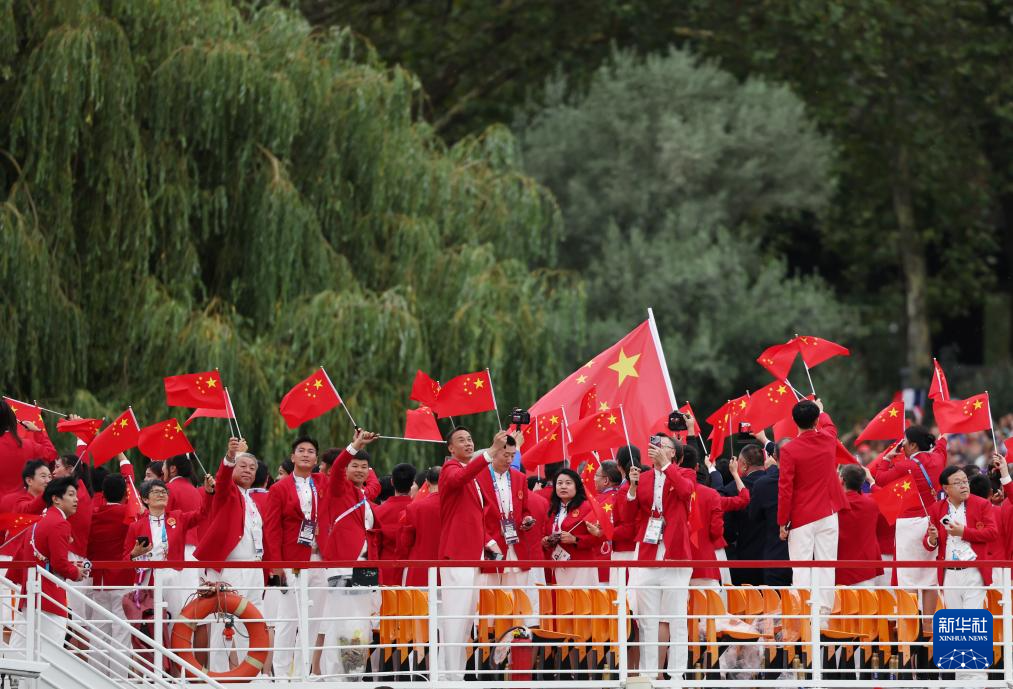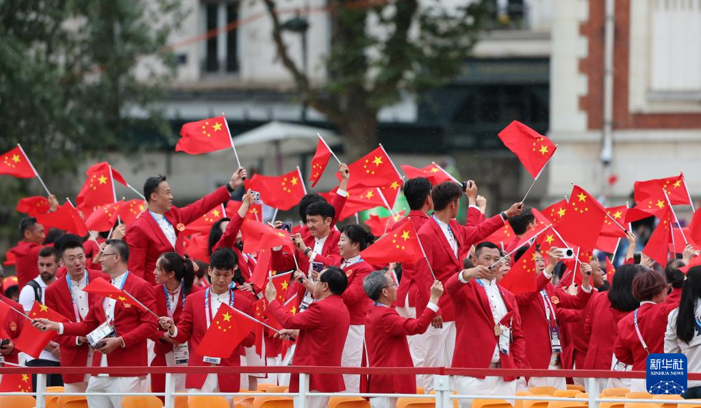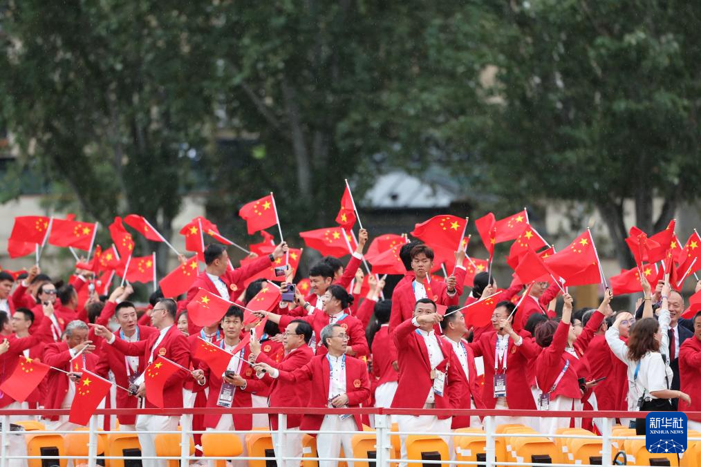7月26日,中國(guó)體育代表團(tuán)在開(kāi)幕式上。新華社記者 呂小煒 攝