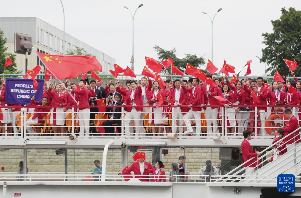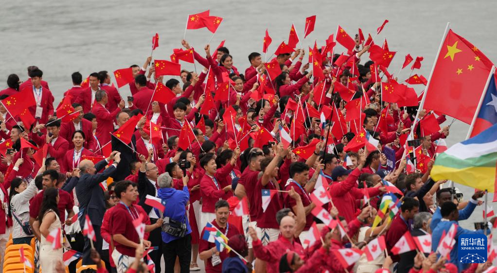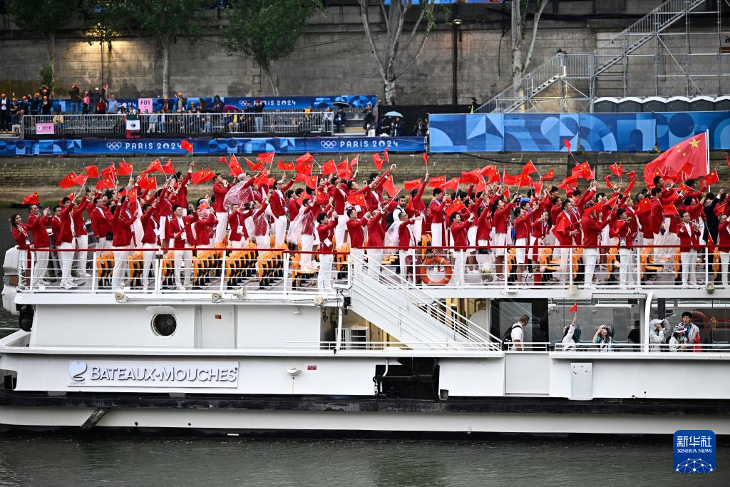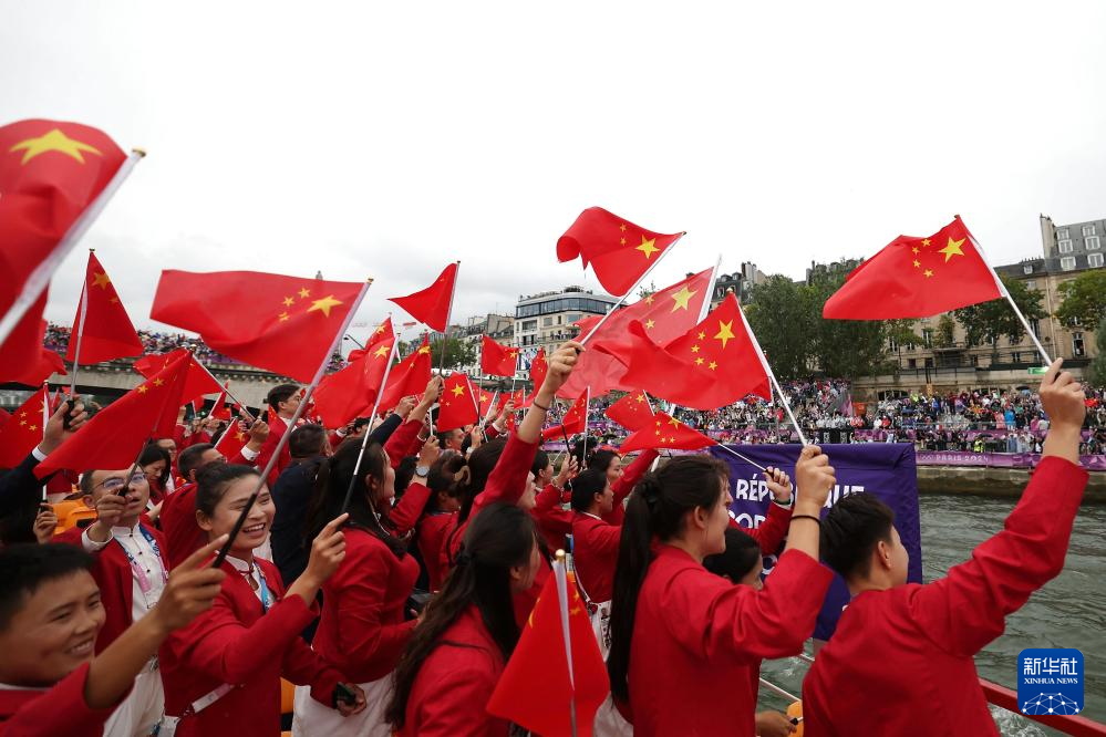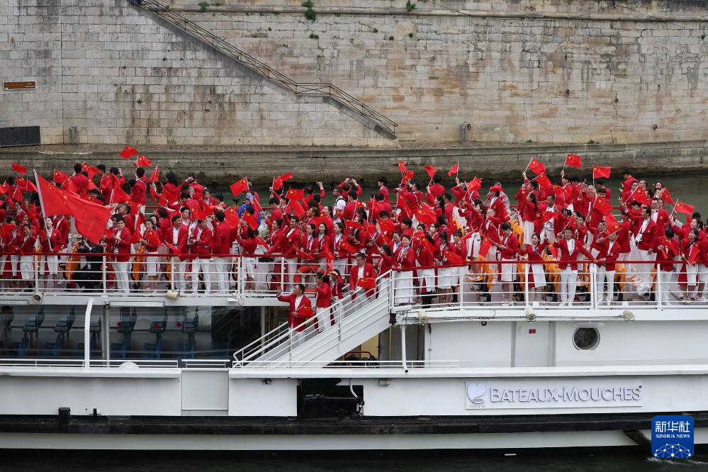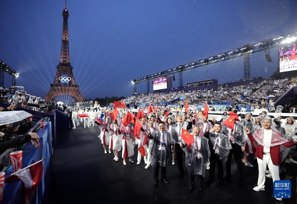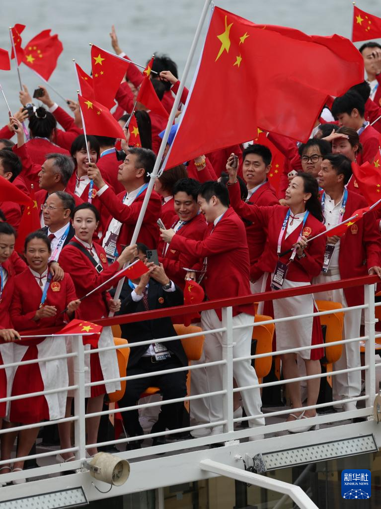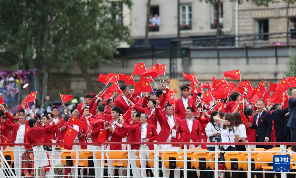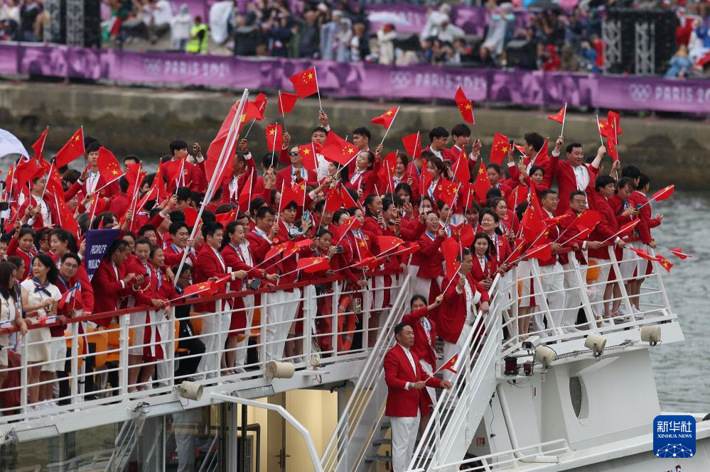 7月26日,中國(guó)體育代表團(tuán)在開(kāi)幕式上。新華社記者 呂小煒 攝