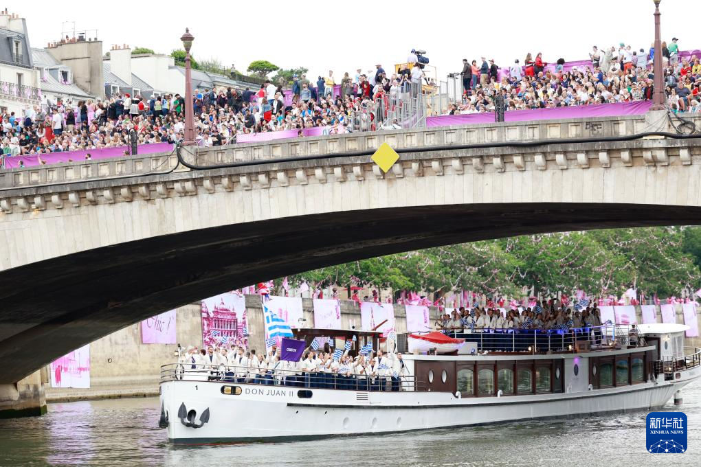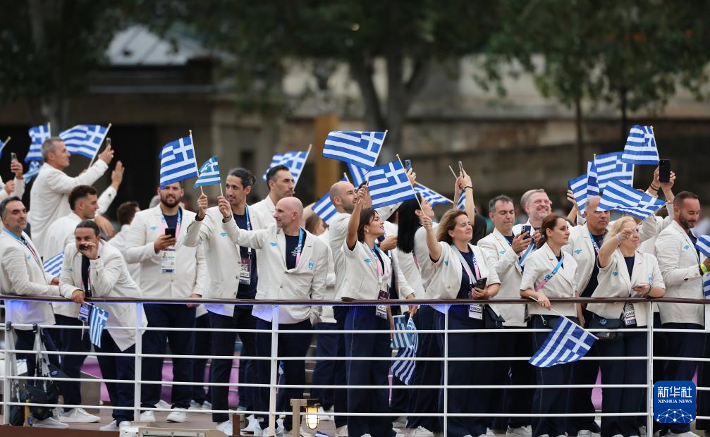 7月26日,希臘體育代表團(tuán)在開(kāi)幕式上。新華社記者 萬(wàn)象 攝