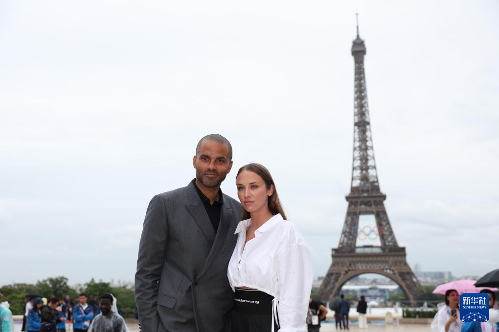 7月26日,法國(guó)籃球名宿托尼·帕克(左)在開(kāi)幕式開(kāi)始前合影。新華社記者 李穎 攝pagebreak