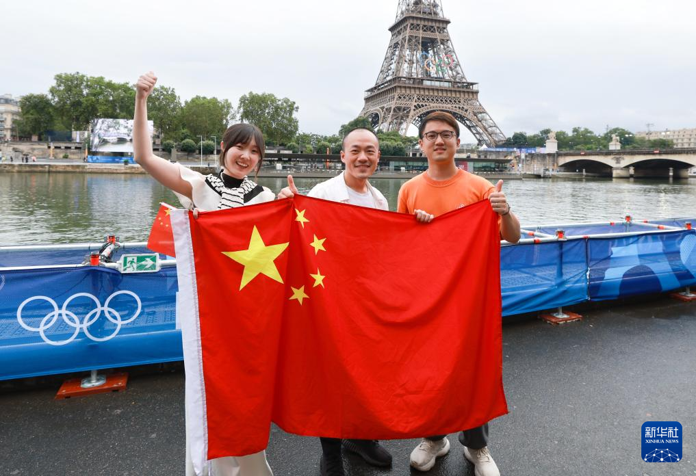 7月26日,中國(guó)體育代表團(tuán)成員在埃菲爾鐵塔前。新華社記者 李明 攝pagebreak