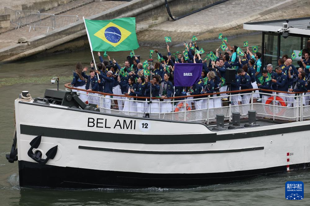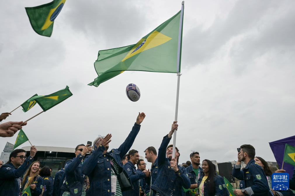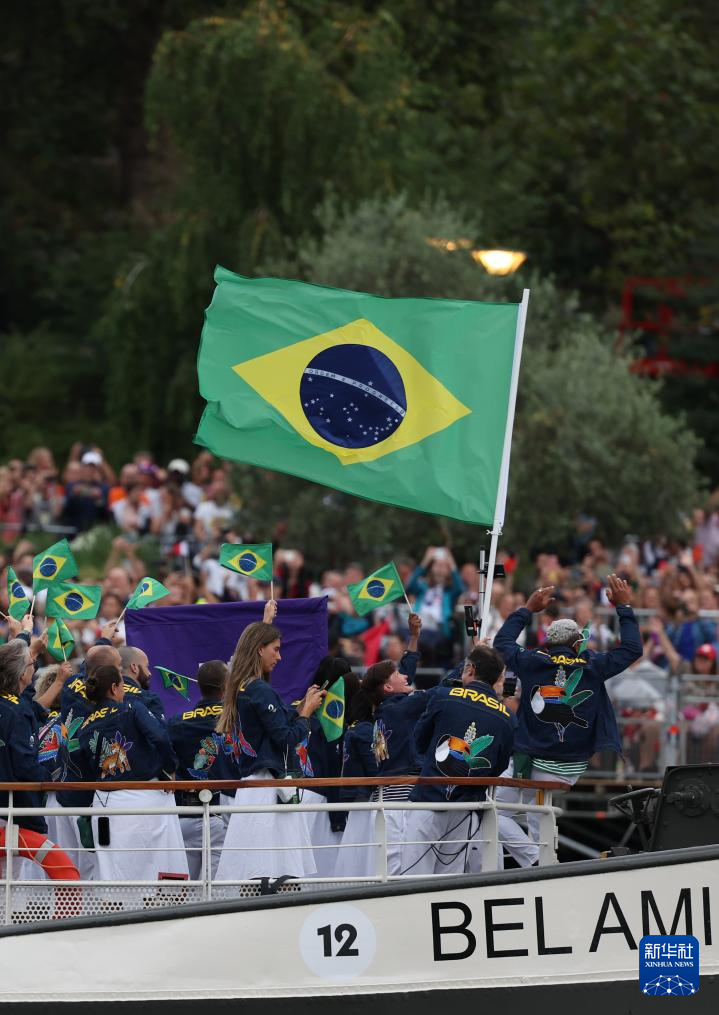 7月26日,巴西體育代表團(tuán)成員在開(kāi)幕式上。新華社記者 陳斌 攝