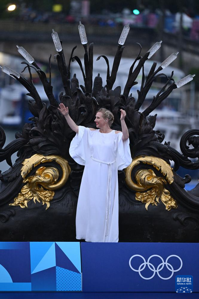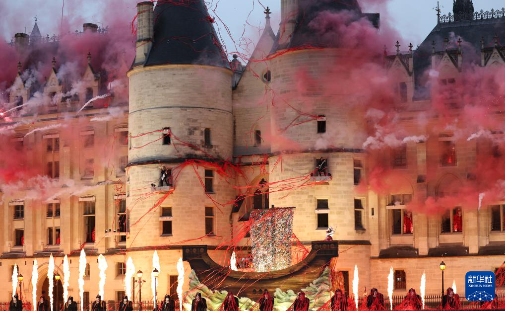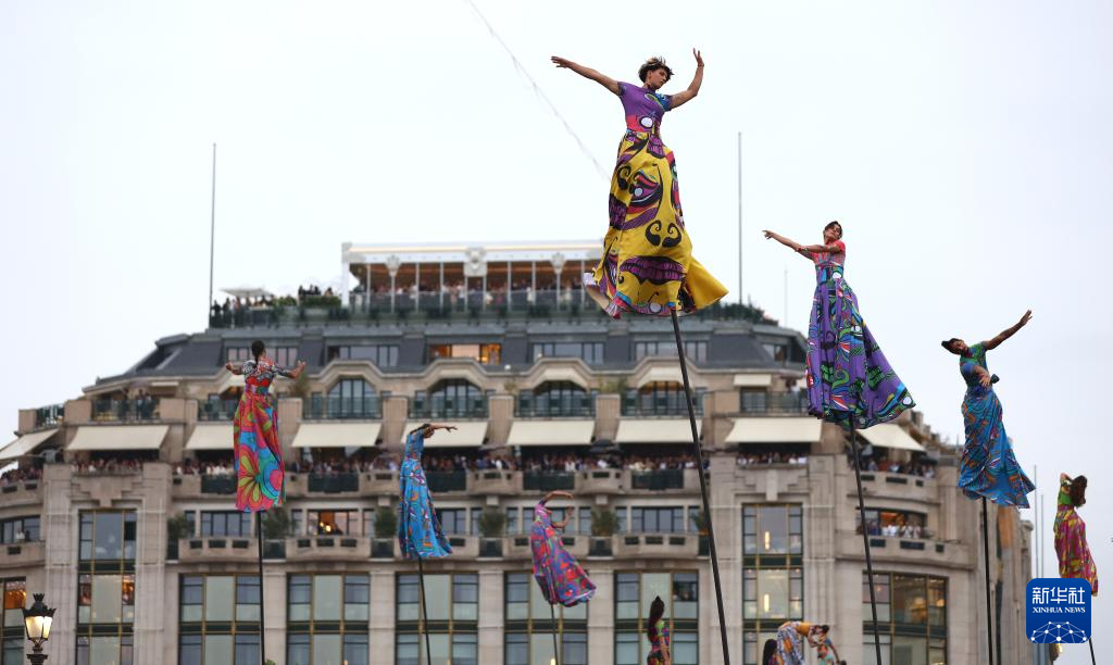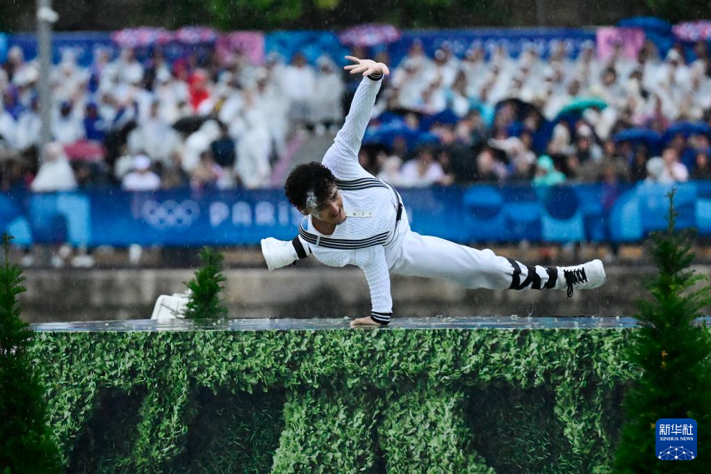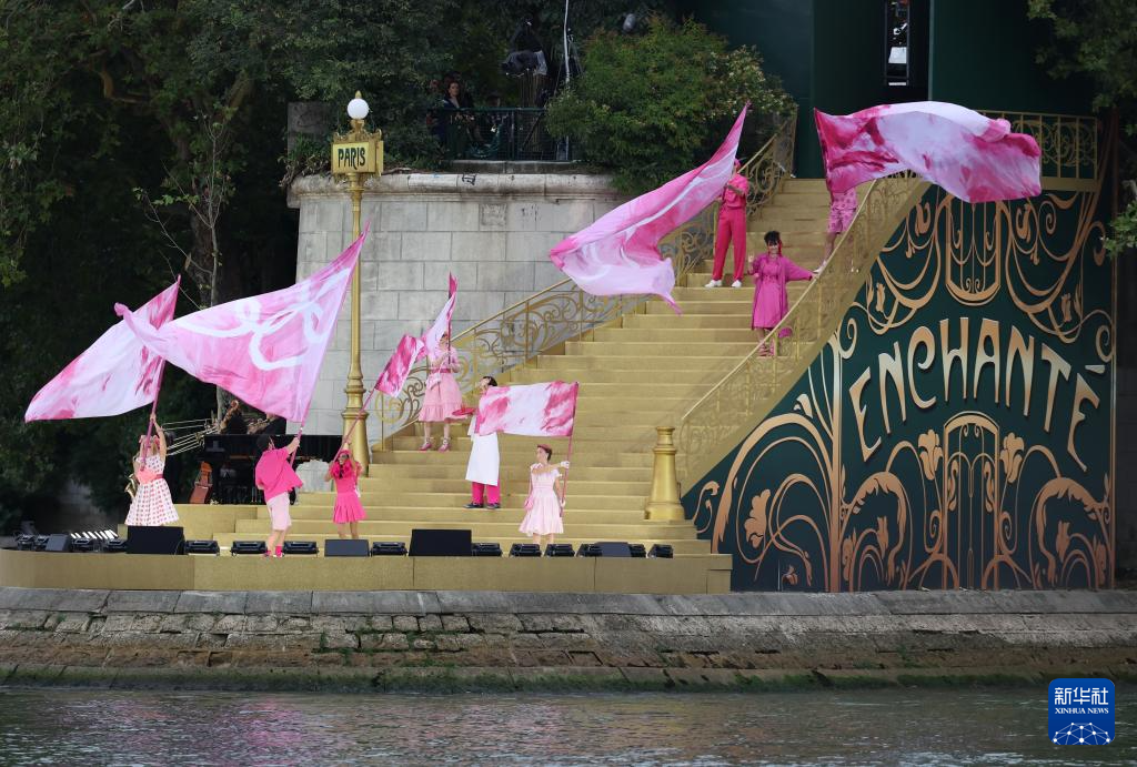 7月26日,演員在開(kāi)幕式現(xiàn)場(chǎng)表演。新華社發(fā)(POOL照片/克洛達(dá)赫·基爾科因)