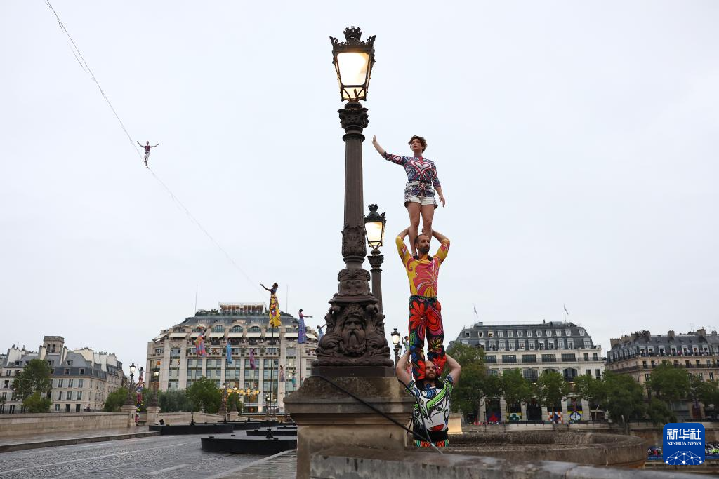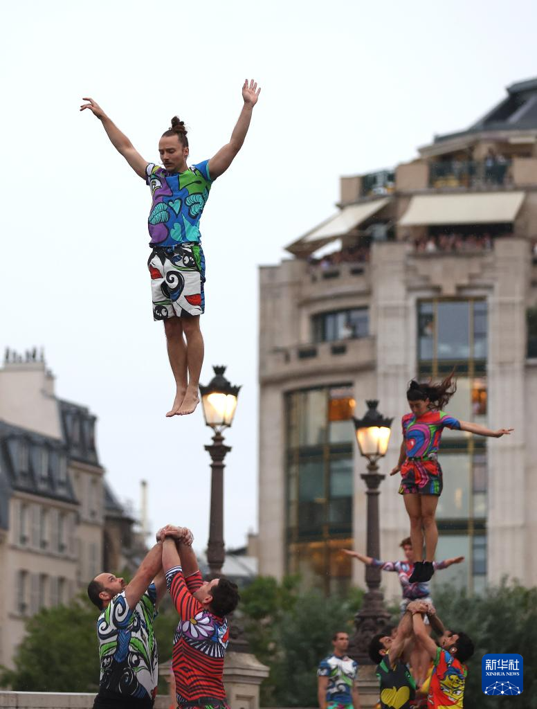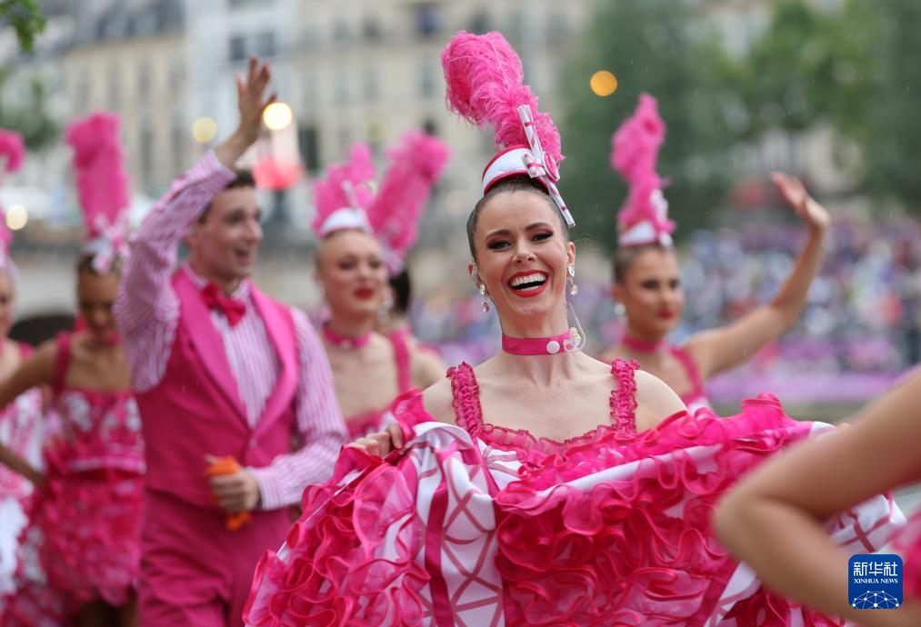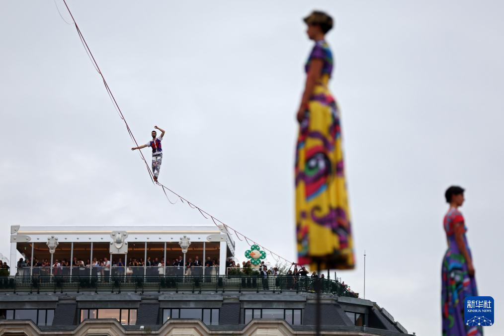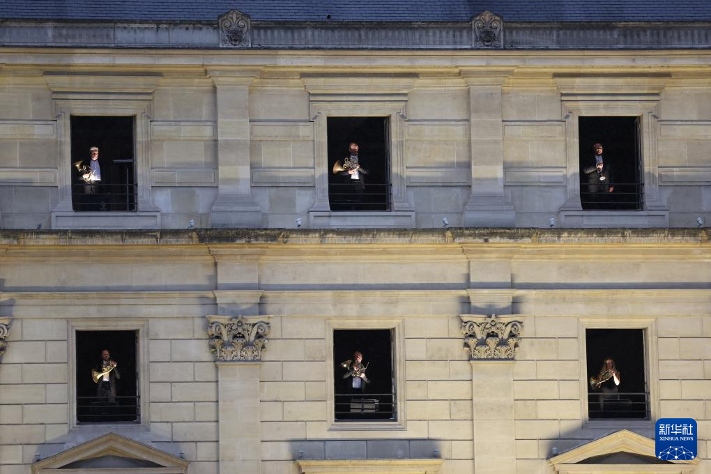 7月26日,演員在開(kāi)幕式現(xiàn)場(chǎng)表演。新華社發(fā)(POOL照片/克洛達(dá)赫·基爾科因)